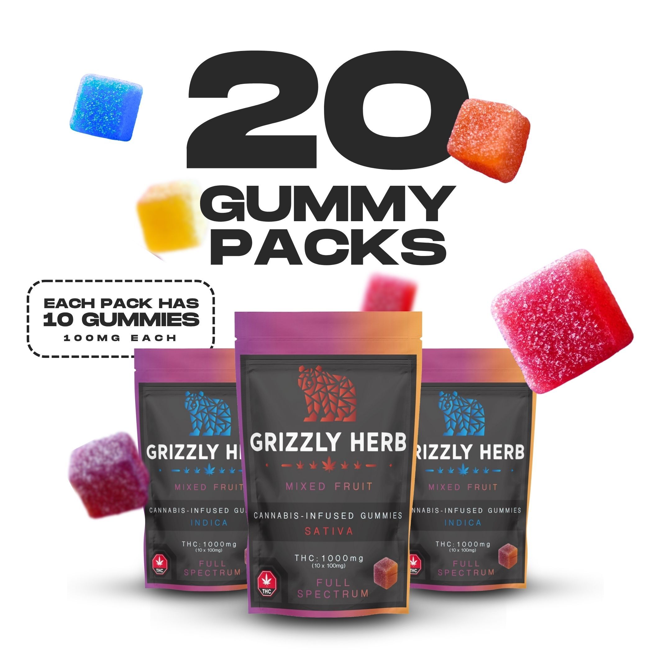 Each gummy contains 100 mg THC.